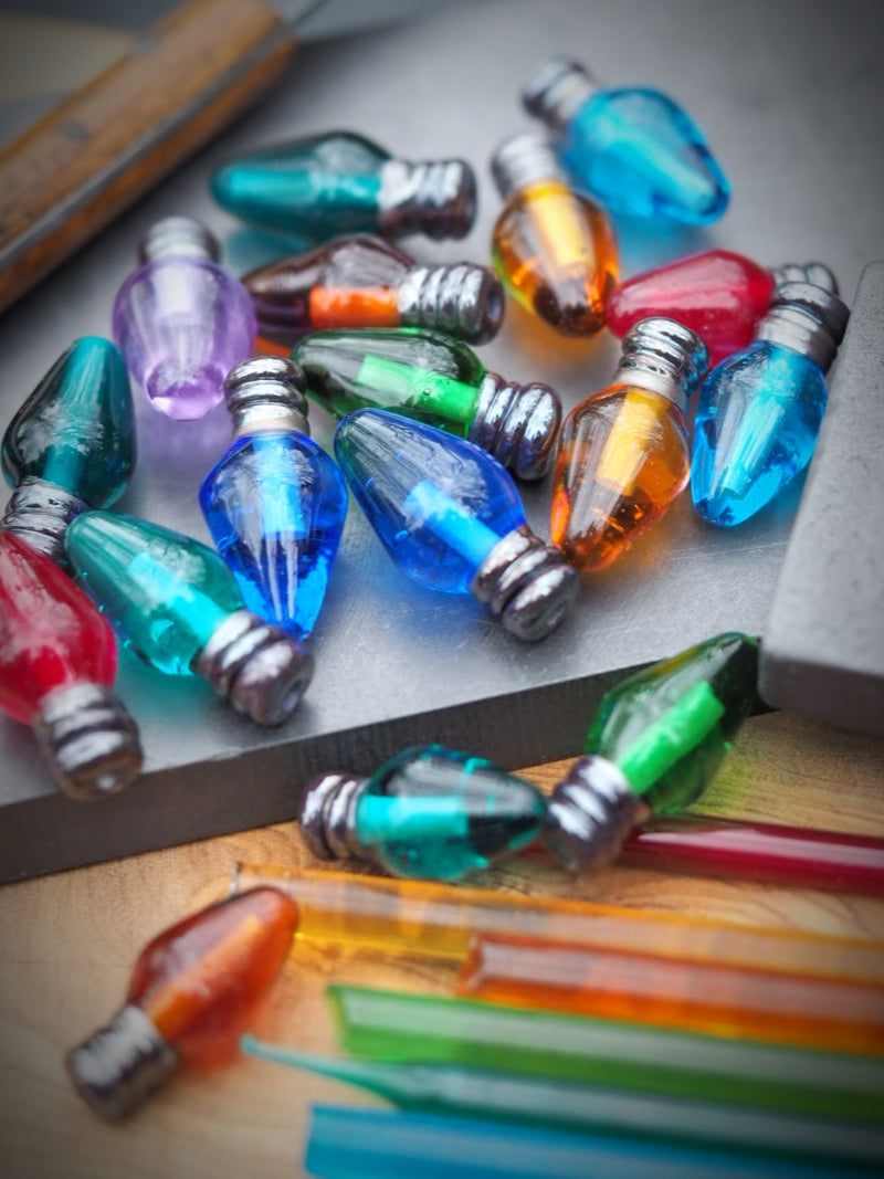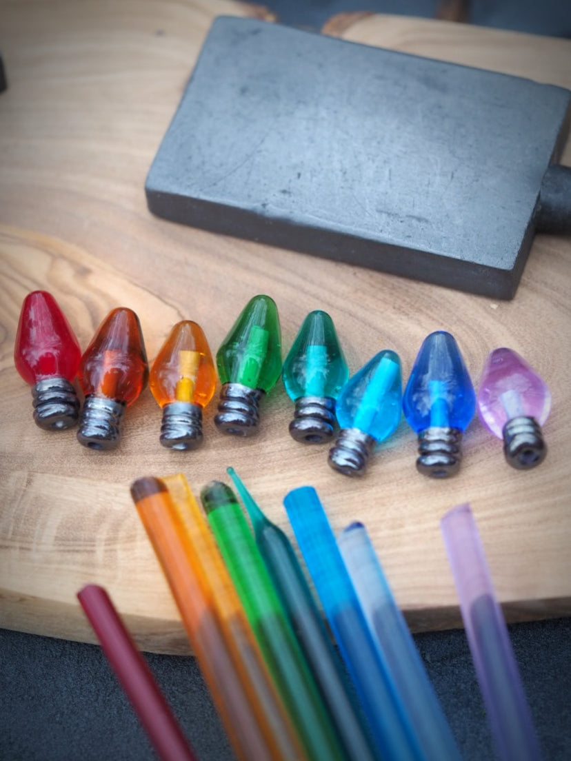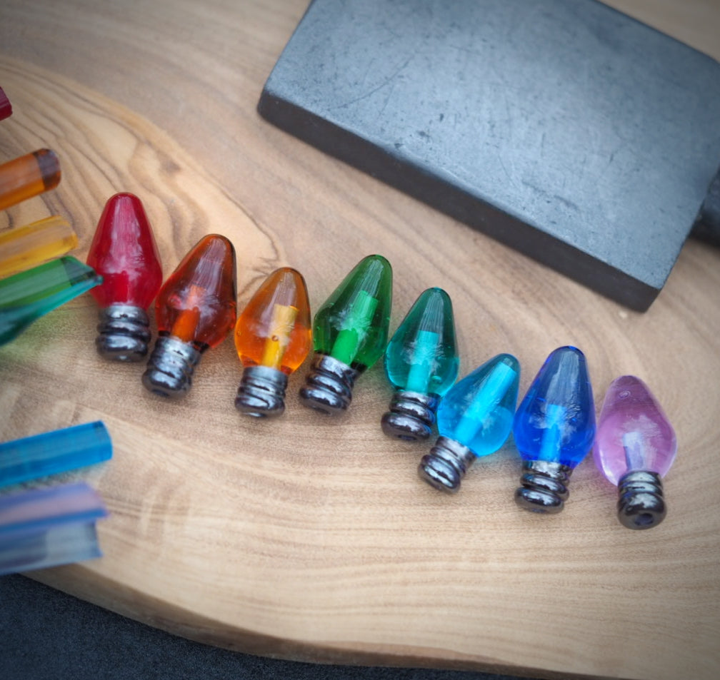 Each tiny bulb is hand-formed in the flame from coloured glass, giving every piece its own subtle variations and glow. They’re lightweight, comfortable, and impossible not to smile at.