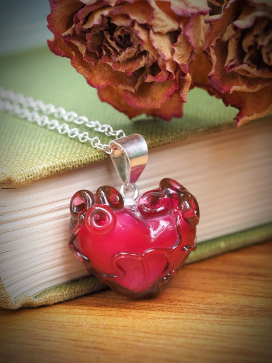 A heart unlike any other - wild, powerful, and pulsing with hidden magic. The Witch’s Heart is hand-sculpted in molten glass, shaped in the flame to capture every curl and curve. Made from translucent magenta glass that seems to glow like an ember when it catches the light, this piece feels alive — a symbol of love, resilience, and the untamed spirit of the witch within.