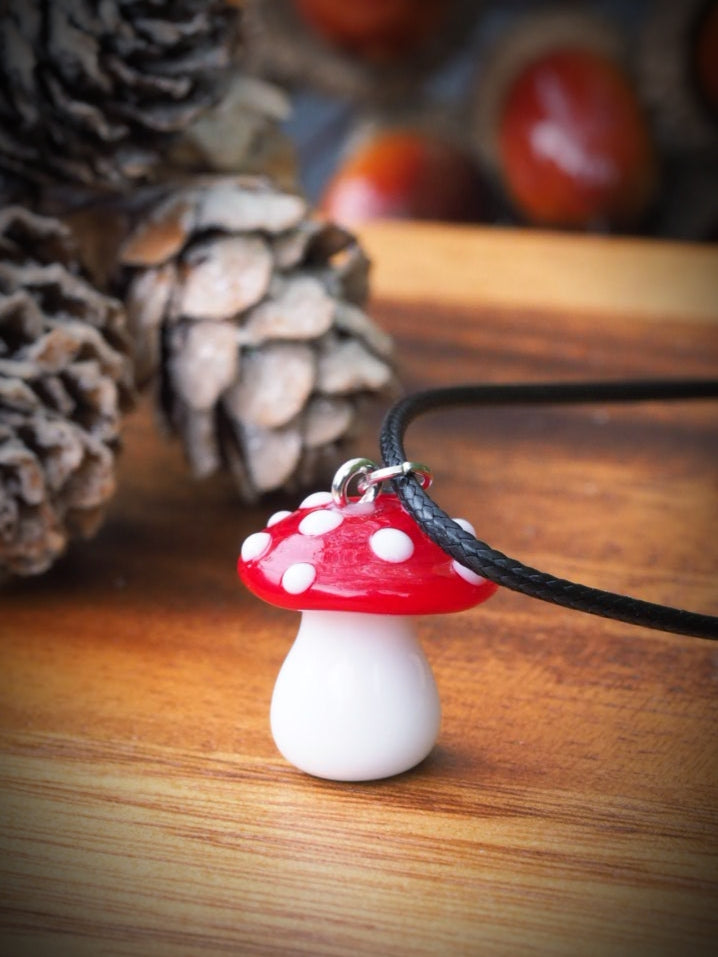 - Handcrafted lampwork glass toadstool pendant